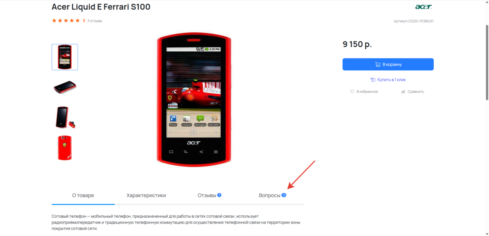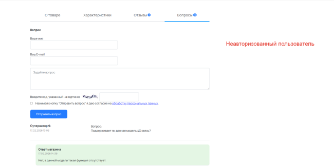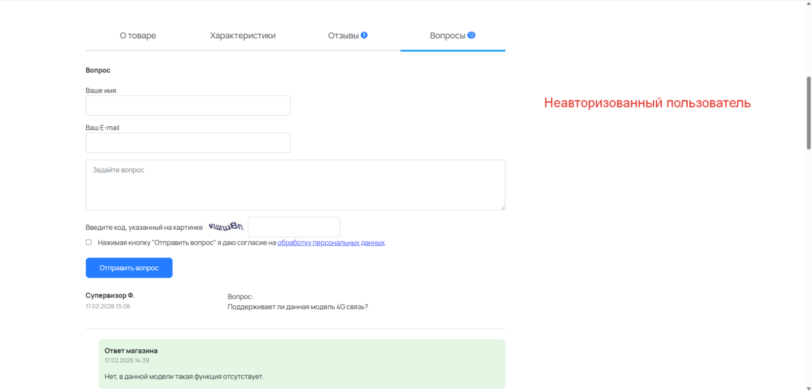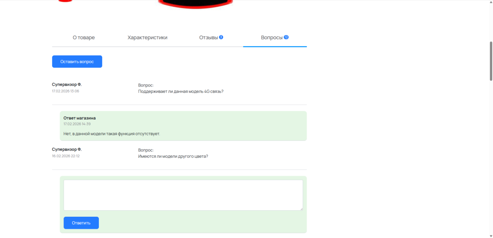 Иногда отзывов на товар недостаточно и пользователям нужна функция обратной связи по товару. Покупатель может быть неуверен в марке или части функций товара, хочет уточнить подойдёт ли в связке с другими товарами или пойдёт ли деталь по его устройство. Всё это теперь можно спросить на специальной вкладке "Вопросы" на странице товара.