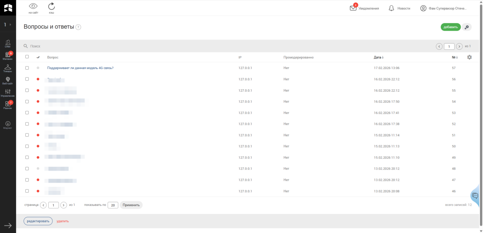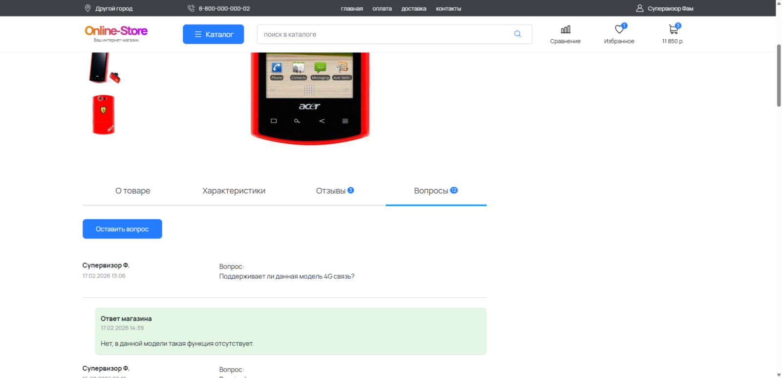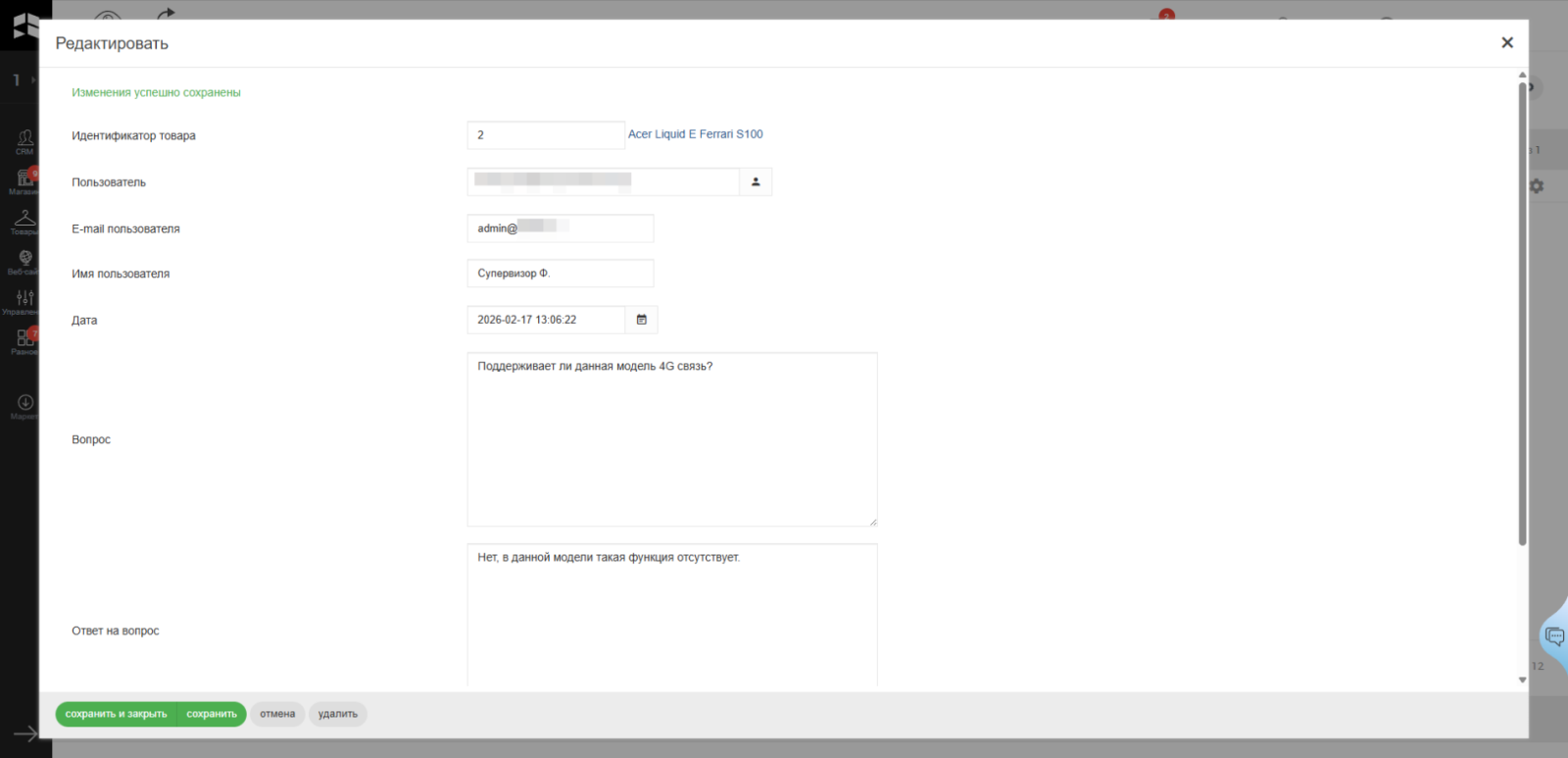 Магазин получит уведомление на E-mail или десктоп приложение от RS и сможет дать компетентный ответ как на странице товара, если он под админом или в админ панели (специальный раздел в Разное->Вопросы и ответы). Если будут новые вопросы это также будет подсвечено.